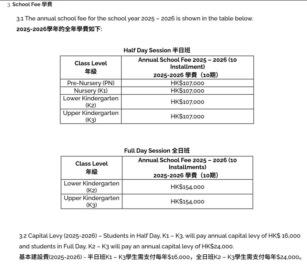 | K3 | K3 | 5 | $154,000 | 幼稚园全天班 |